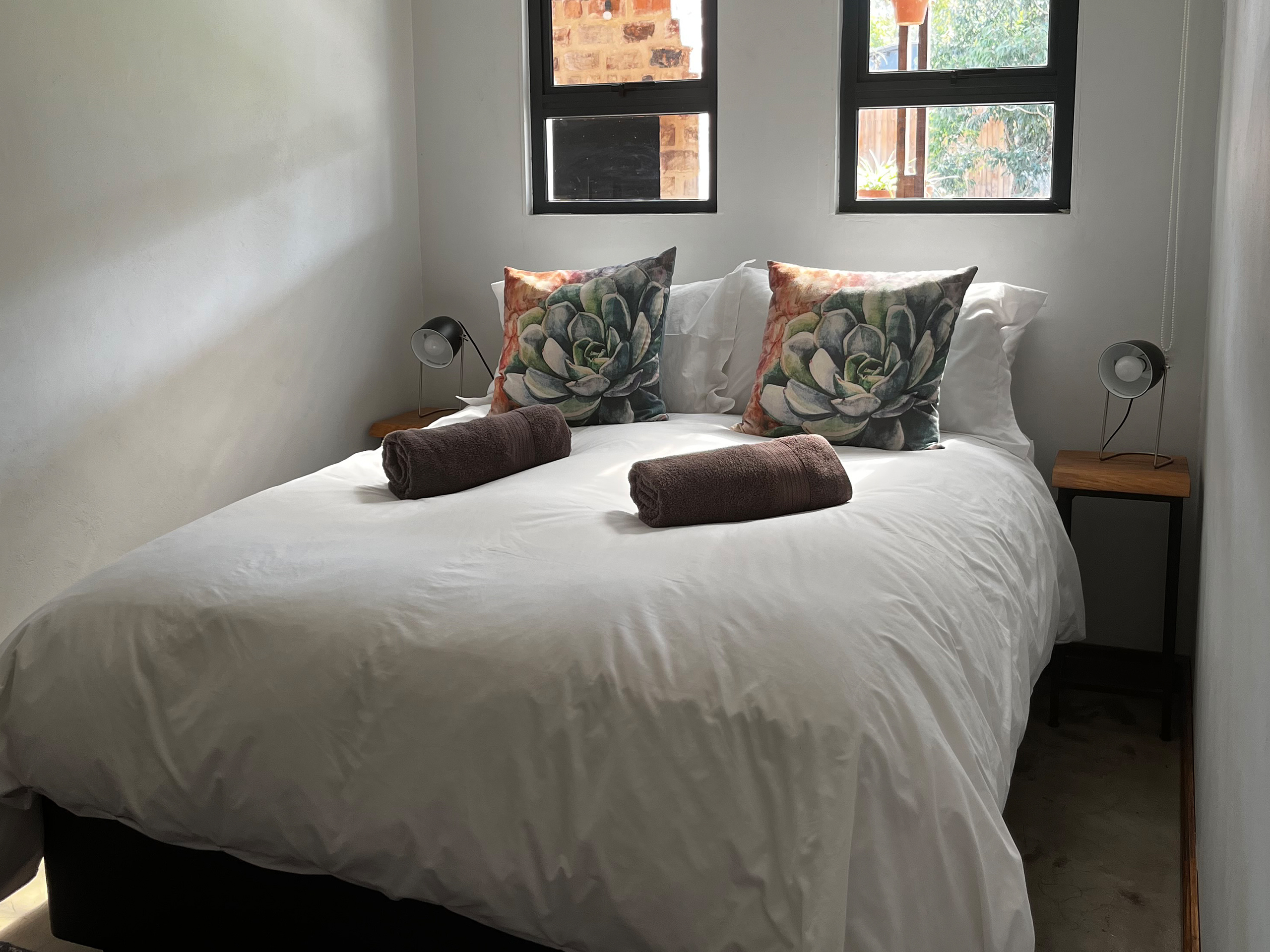 Furnished with a Double size bed. Essentials such as towels, bed sheets, soap & toilet paper are supplied, as well as hangers, bed linens, electric blankets & bed blankets.