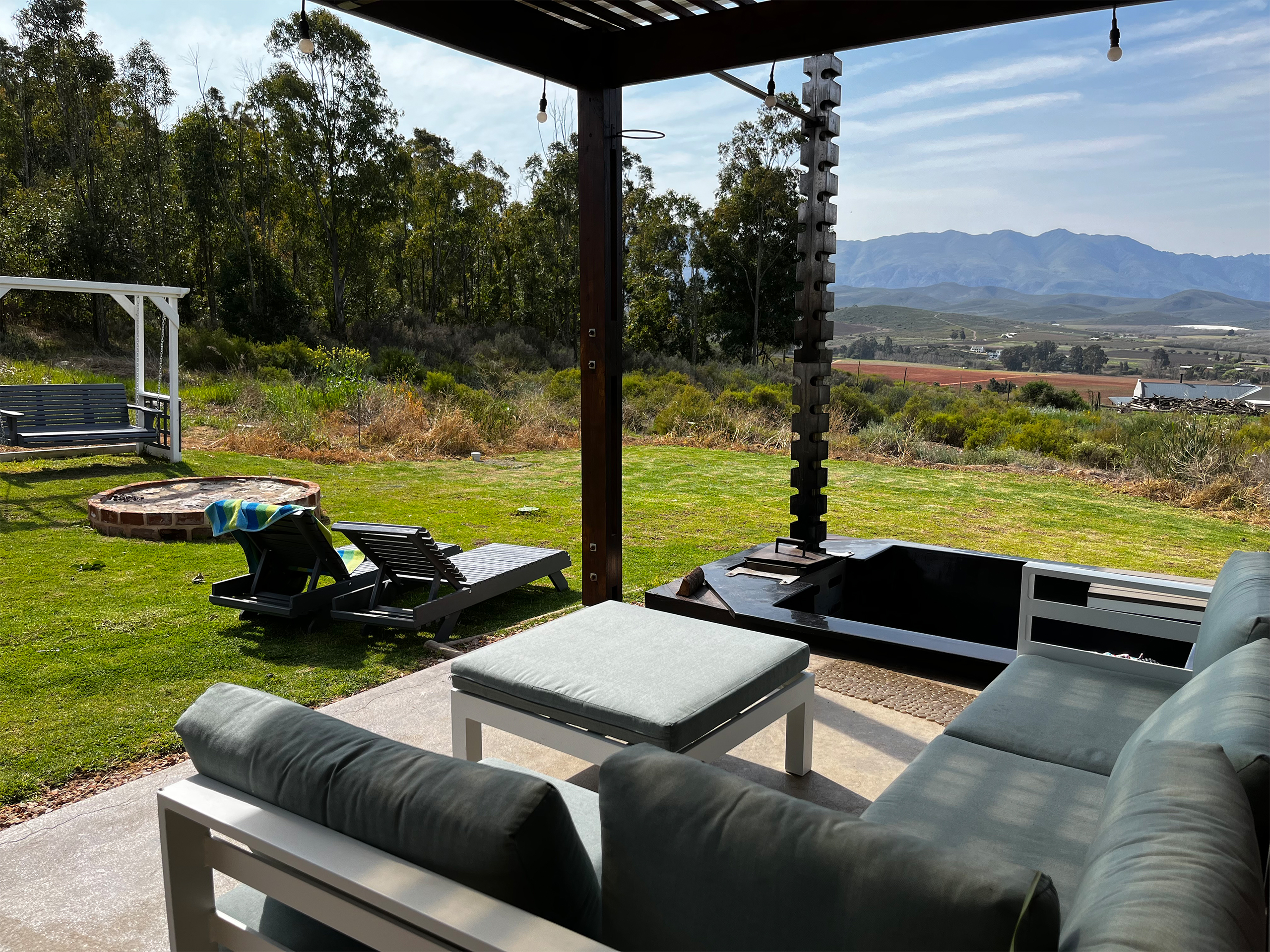 Our outdoor Fire Pit is bonfire worthy & ideal for a Potjie pot or campfire songs outside, situated outside in the private backyard.